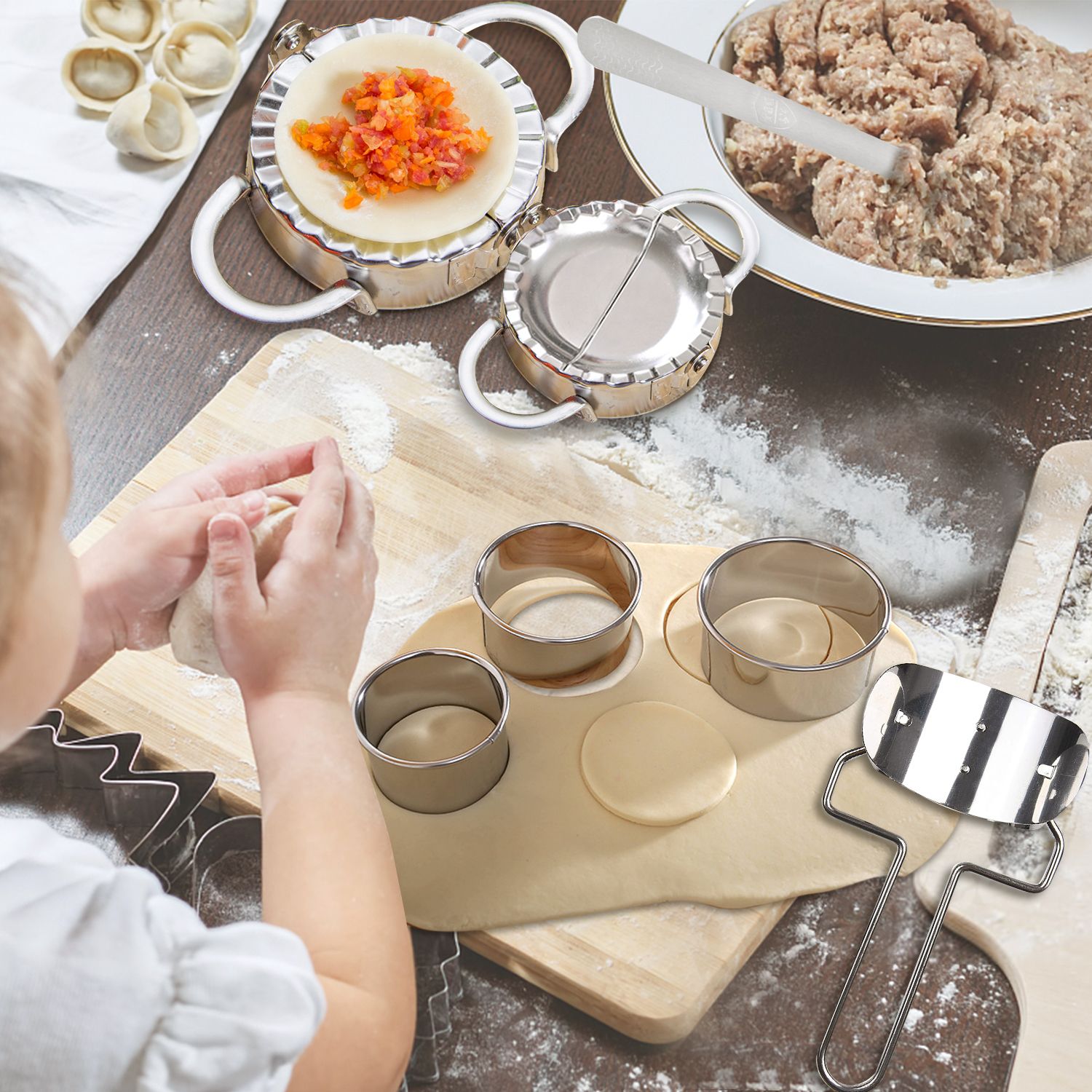 1.[Dumplings Maker Features]The Dumplings Maker Set is made of stainless steel durable long time lasting; easy to use and easy to clean; just flush the flour with water.
