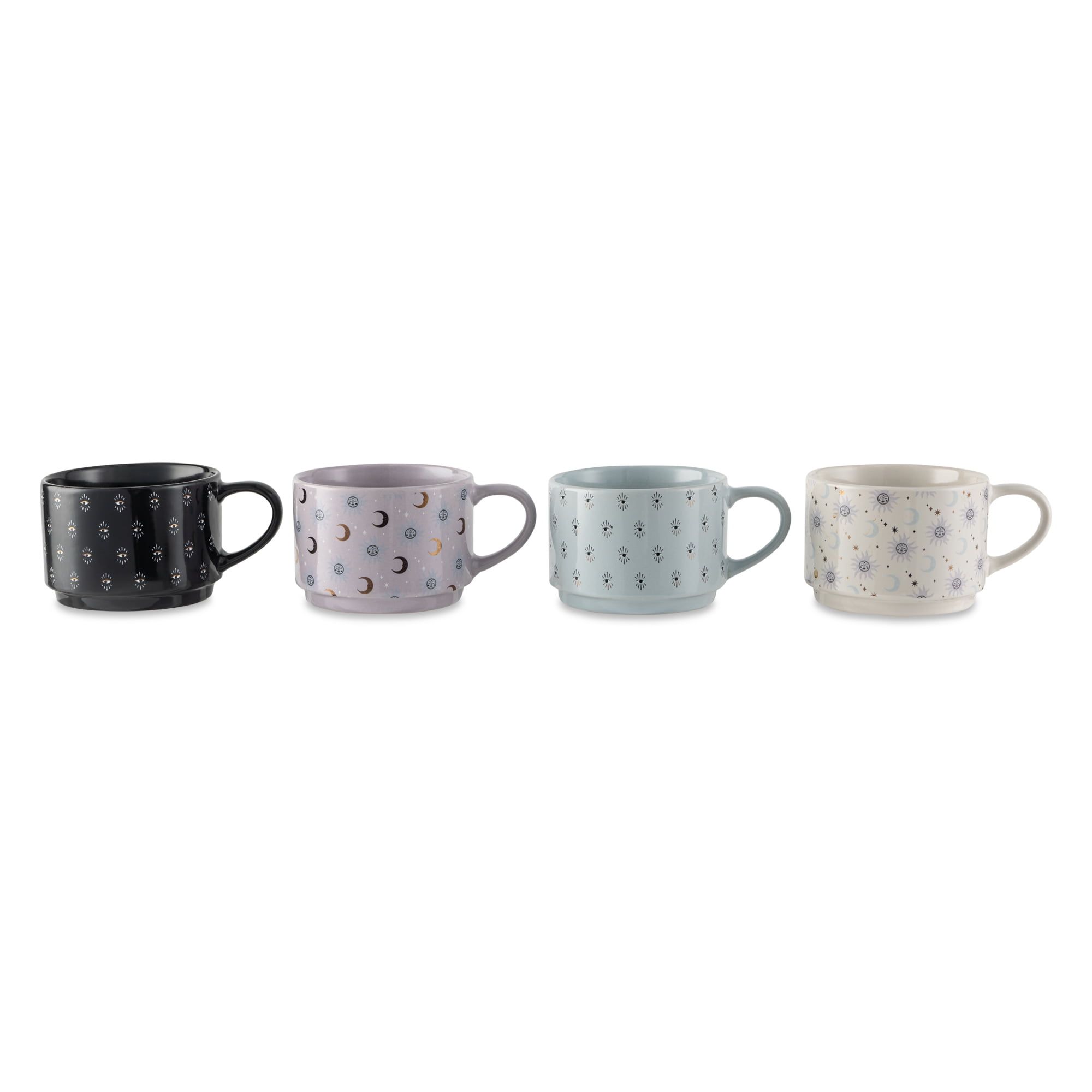 4 Pack Stacking Celestial Mugs, Assorted Colors 11.1 fl oz, Stoneware