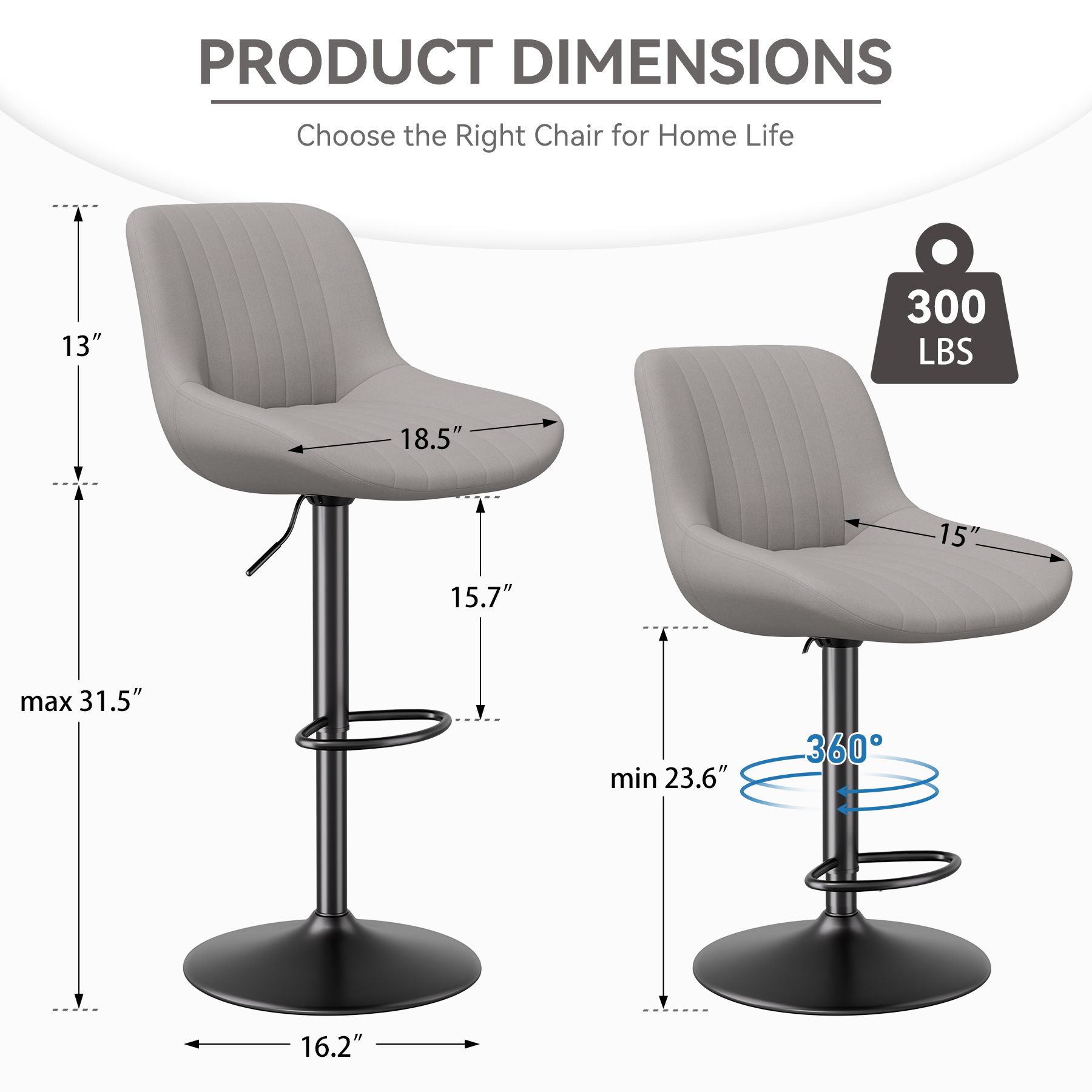 CUSTOMIZABLE HEIGHTS AND SIZES: Our bar stools are available in a variety of heights to accommodate standard and high bars, and in sizes of 24-inch bar stools and 30-inch bar stools to suit different spaces and preferences.