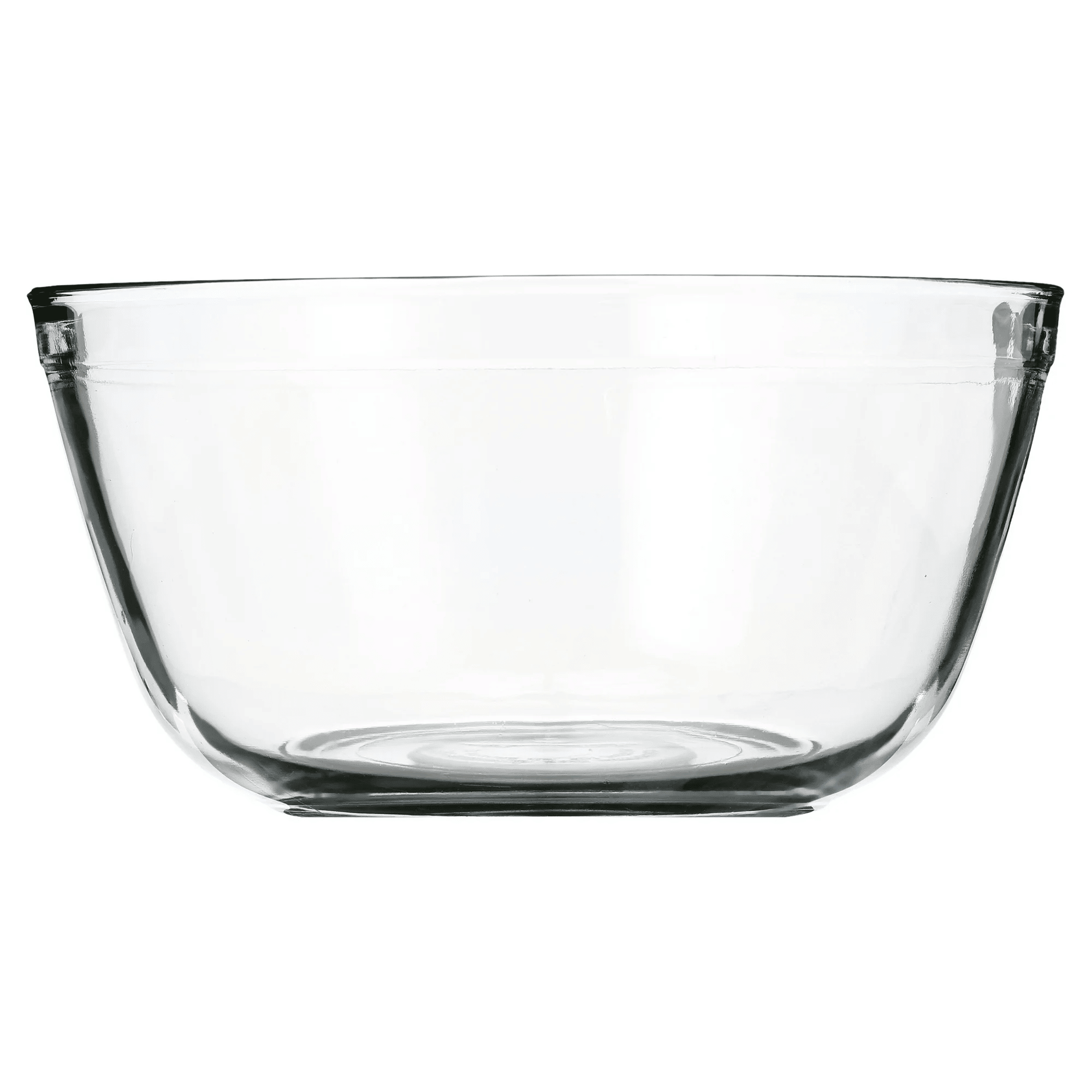 Our glass mixing bowl is the ultimate mixing multitasker. Mix, pour, cover, and store. Glass is extra-thick with wide openings and thick rims for maximum durability. At 4-quarts, this mixing bowl is perfect to dress salads, marinate chicken breasts, whip sauces, marinate meats and fishes, whip cream, microwave soups, and more. Each clear glass mixing bowl is microwave, fridge, freezer, and dishwasher safe.